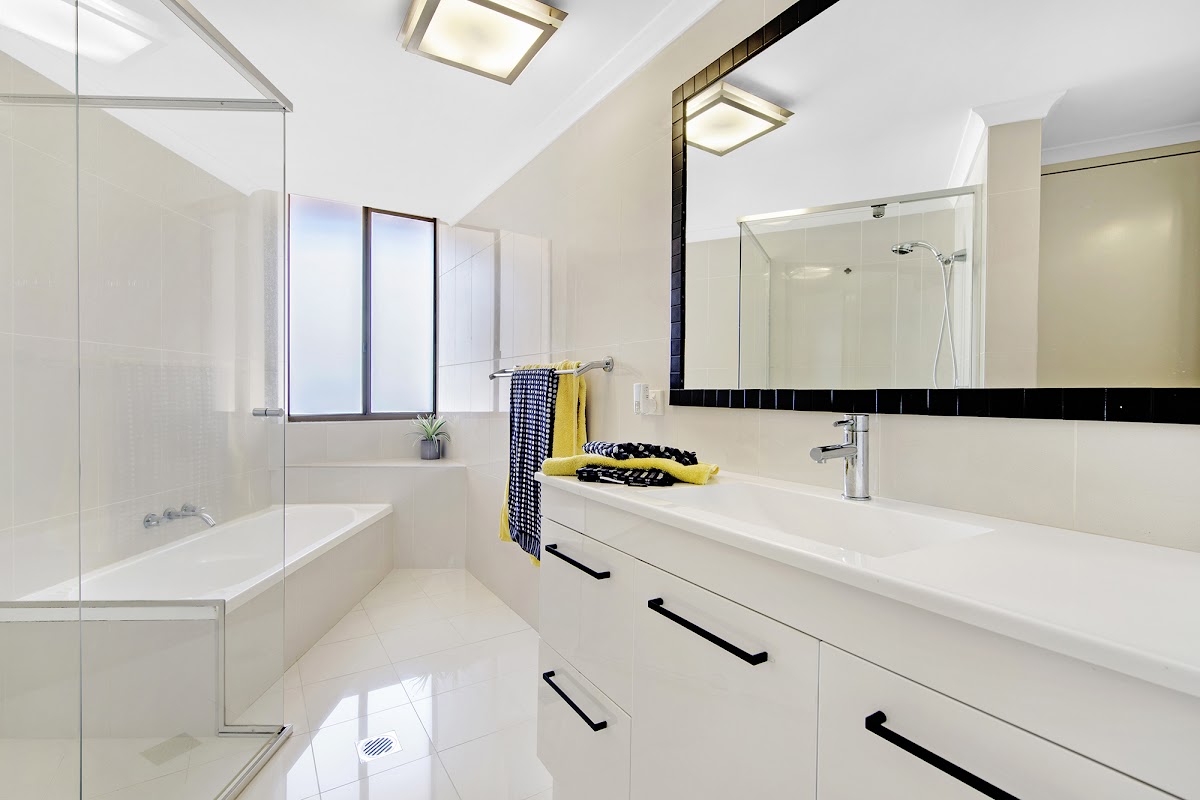 The 2nd bedroomis adjacent to the main bathroom which has been remodelled and has a separate toilet / powder room alongside the laundry – nice modern tiles and colourscheme.