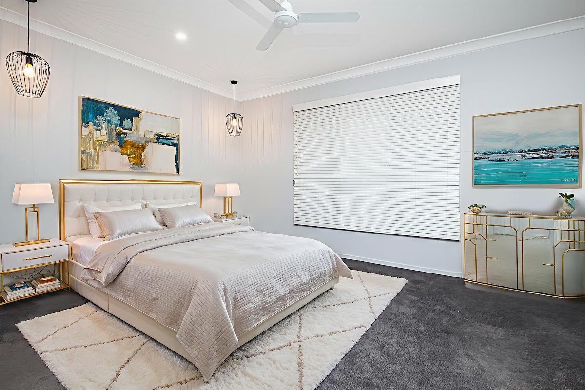 • Designer lighting: LED downlights throughout, statement pendants over the island.