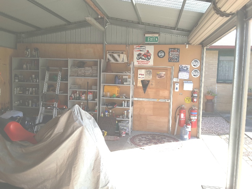 ACCESS TO REAR YARD WITH LARGE 7X13m GARAGE/WORKSHOP, MANCAVE LINED OUT WITH MEZANNINE FLOOR, EXTRA STORAGE AND DEN
