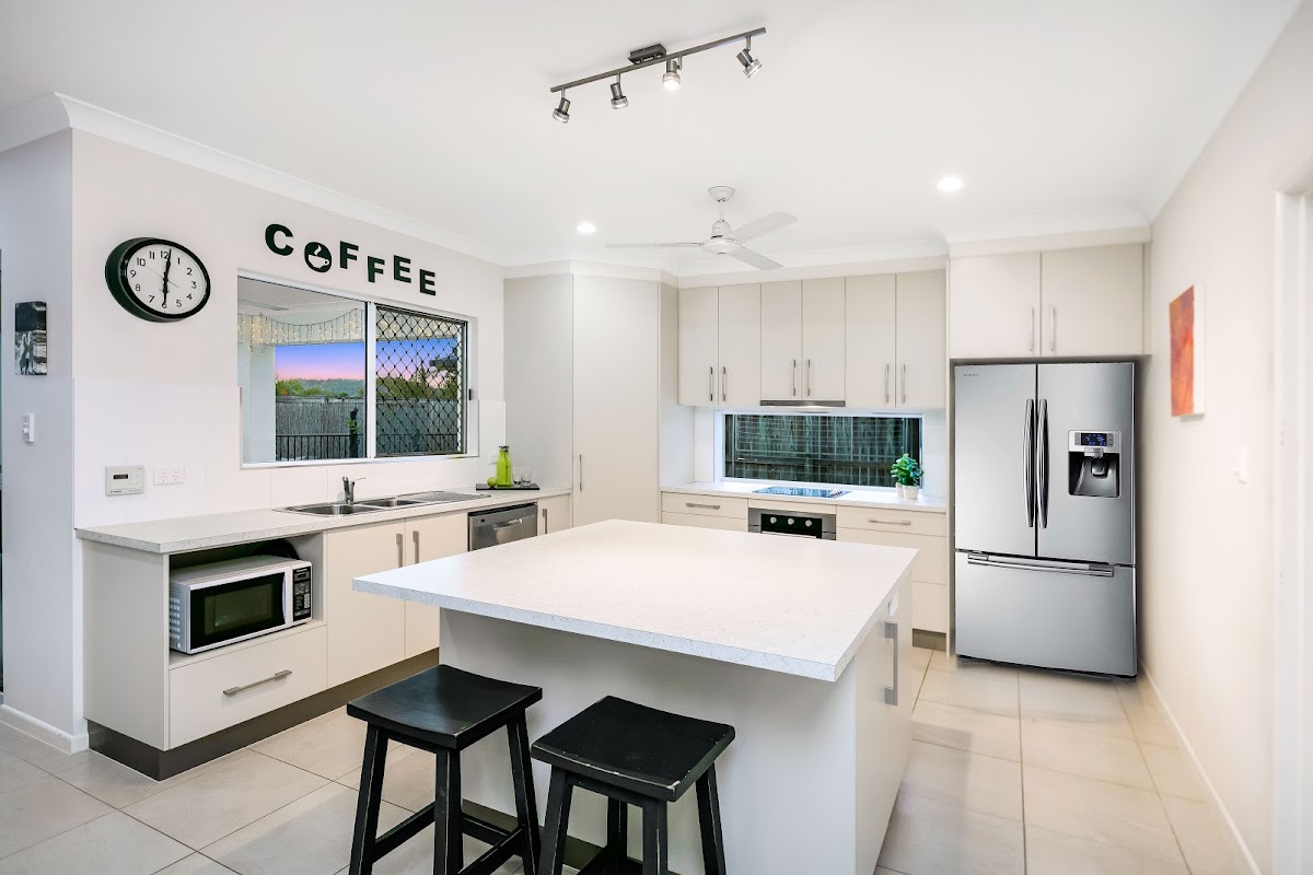 The kitchen lends itself to the chef in all of us that needs way more preparation space than is necessary whilst providing a gathering point for everyone to meet, enjoy food, laugh and drinks without feeling cramped.
