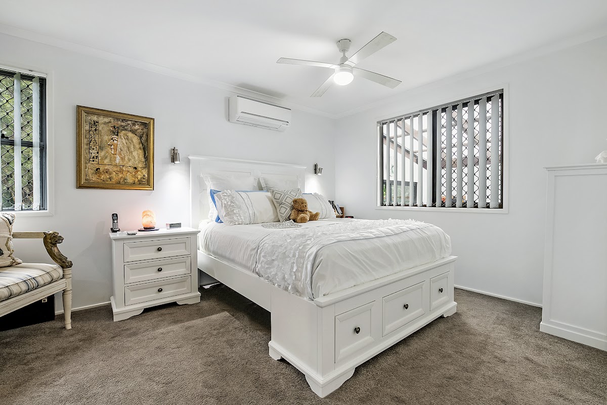 There are 3 large bedrooms, all with built in wardrobes ( NB The Master Bedroom does have a walk in wardrobe). All 3 bedrooms are air conditioned and the Master bedroom has its own ensuite. The main bathroom is spacious and all bedrooms have ceiling fans too.
