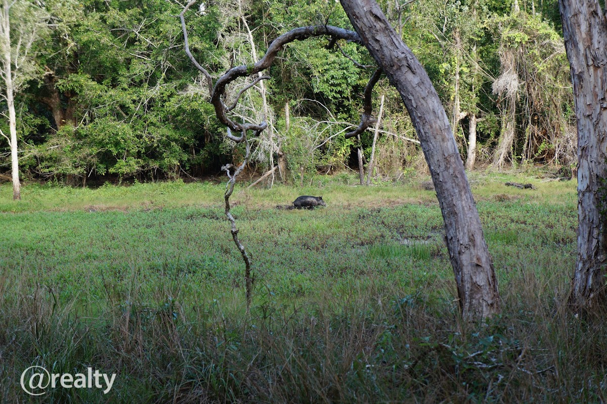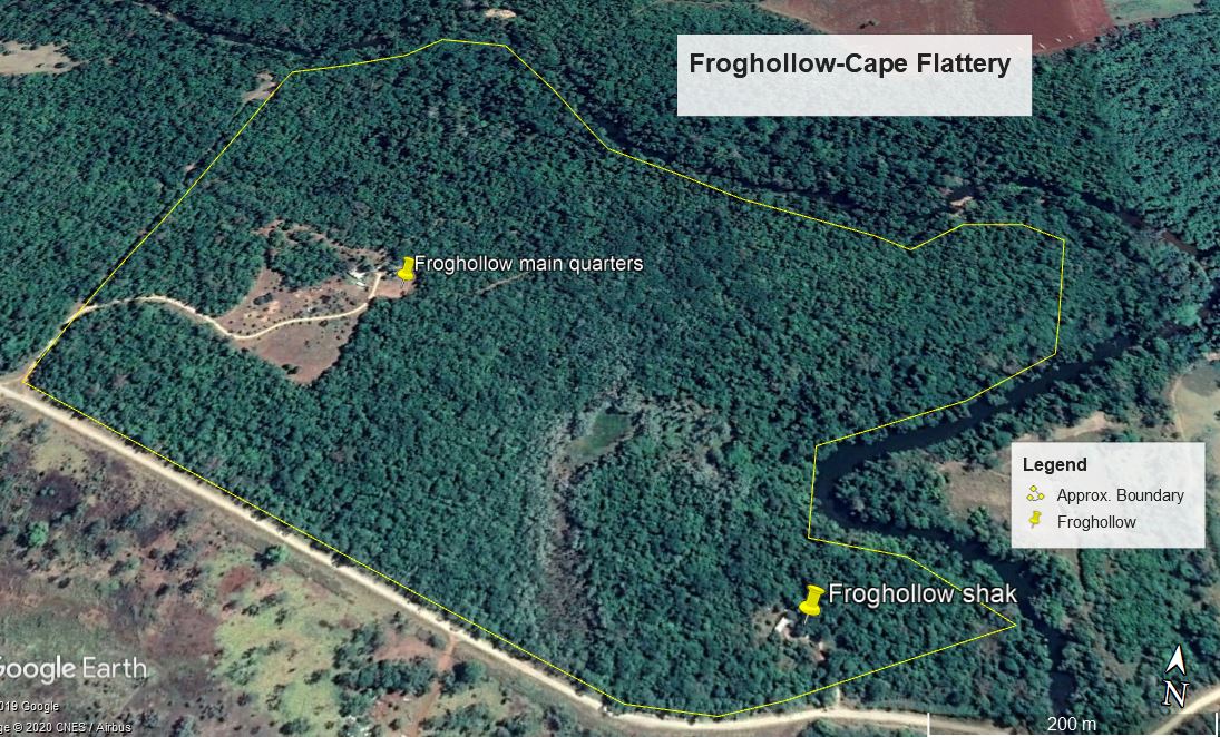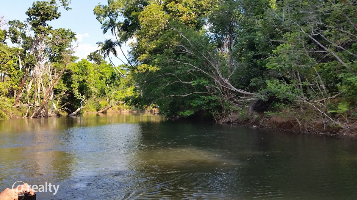 2 kilometres of fresh water river boundary as it contours, river flows all year & is full of Barra, jacks, Perch, Cherapin & More.