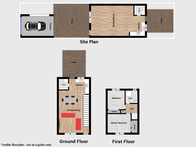 • Parking space behind garage door for 2 vehicles in tandem (1 undercover, 1 uncovered)