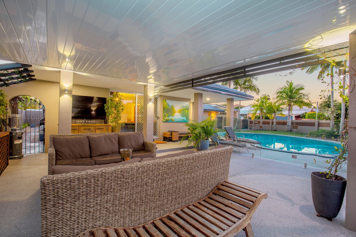 Lush ‘Sir Walter’ grass and landscaped supremely private tropical gardens, surround a grand fully tiled, lagoon style, in-ground swimming pool and undercover outdoor entertaining area.