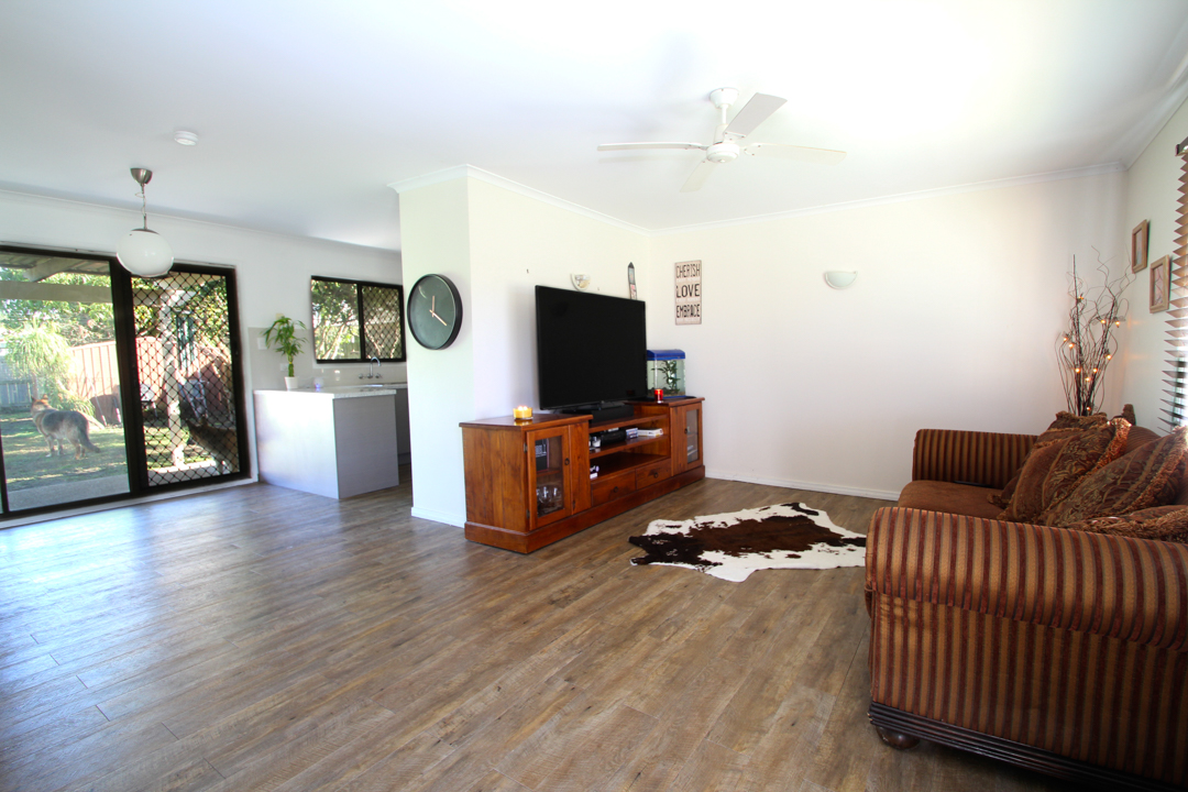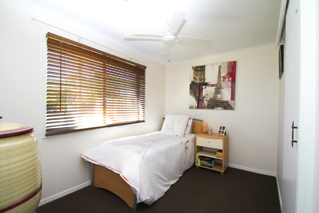 • 3 large bedrooms, all with ceiling fans, timber blinds and security screens