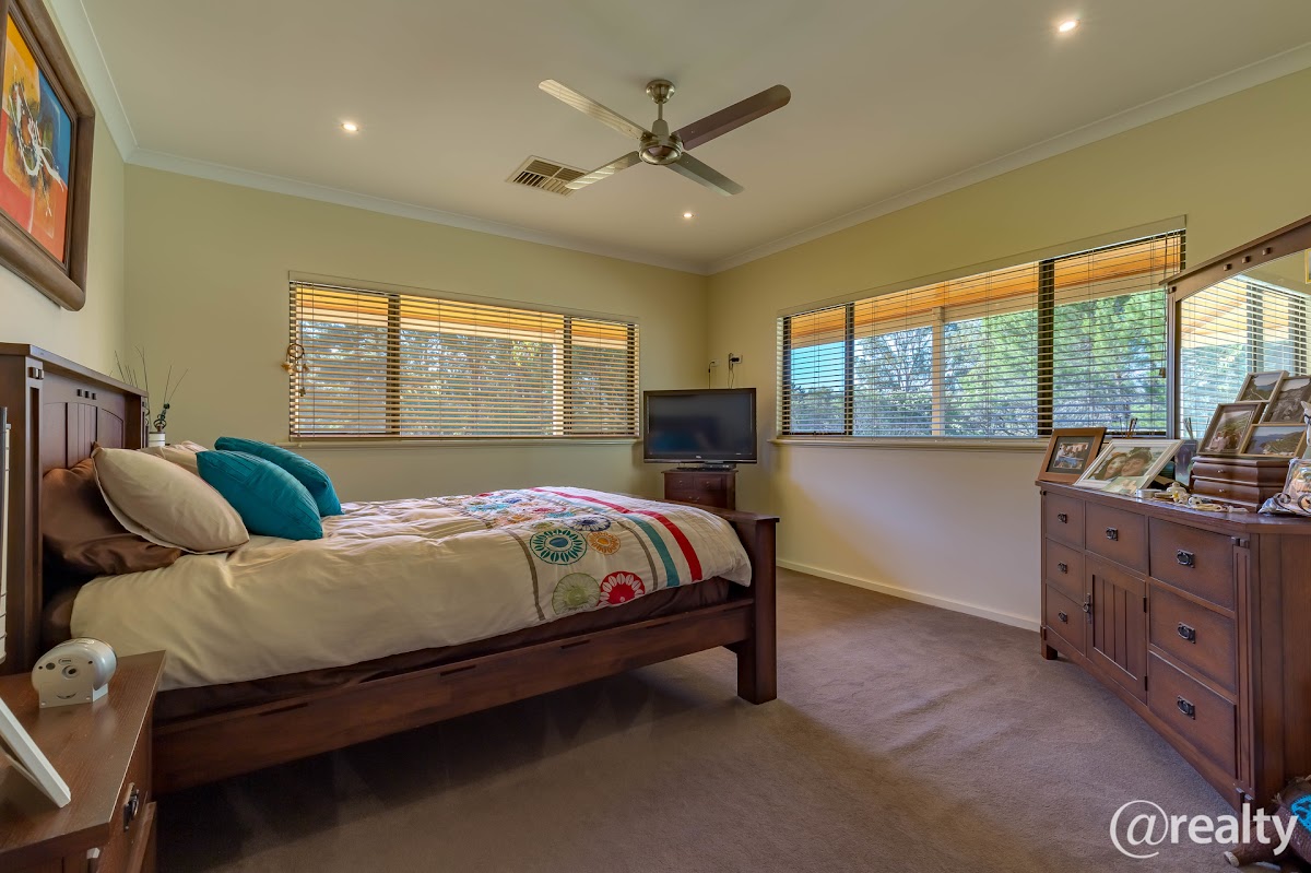 This astounding 10-acre designer residence of 448.57sqm in total is beautifully presented. The many quality features include a long asphalt driveway, 4 extra-large bedrooms all with ceiling fans, 2 bathrooms, a spacious open plan living, dining and quality kitchen with extra-large pantry, high ceilings, fully insulated and ducted reverse cycle air conditioning, wood fire heater and Solar roof panels. Lots of storage and an extra-large laundry in the main residence plus a teenage retreat /Studio fully air-conditioned.