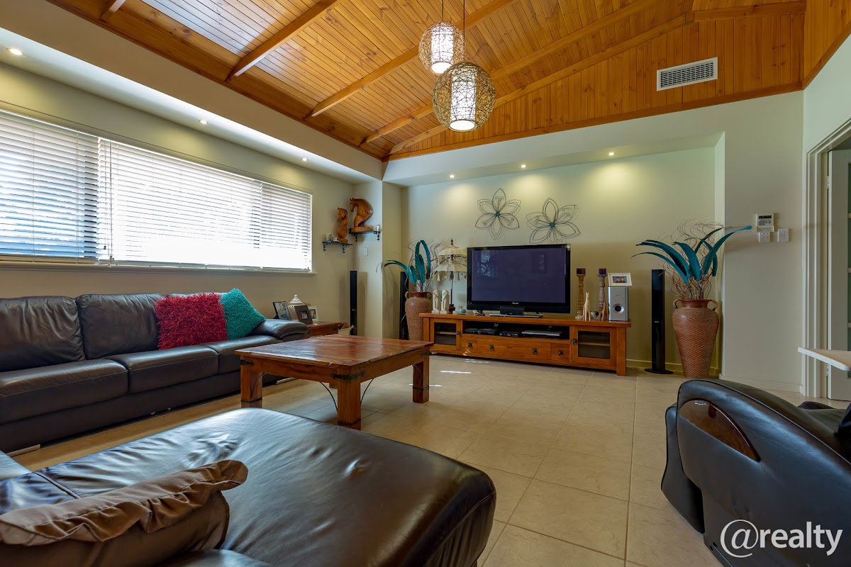 The large games room has a built-in bar that flows outdoors to a spacious entertaining area – a lovely spot for the family BBQ and get together with friends. Including a delightful dining patio with extra high pine clad ceilings, fans and quality cafe blinds that open up to reticulated lawns and overlooks the sparkling saltwater pool.