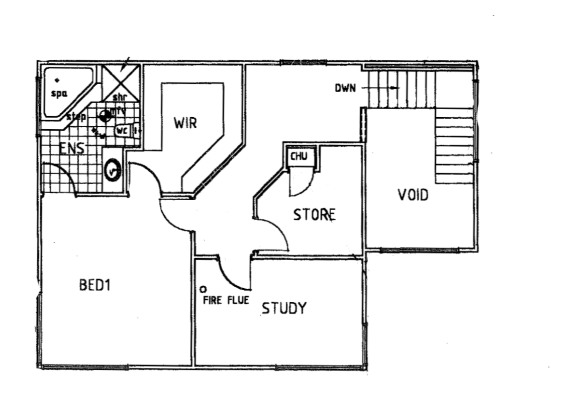 Separate large storeroom with built in shelves and chute to downstairs laundry