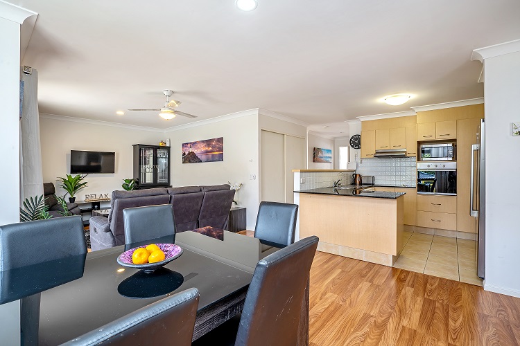 The ideal layout for those who love privacy. The large master with en-suite bathroom is at one end and the other two bedrooms and main bathroom at the other end for peaceful living.