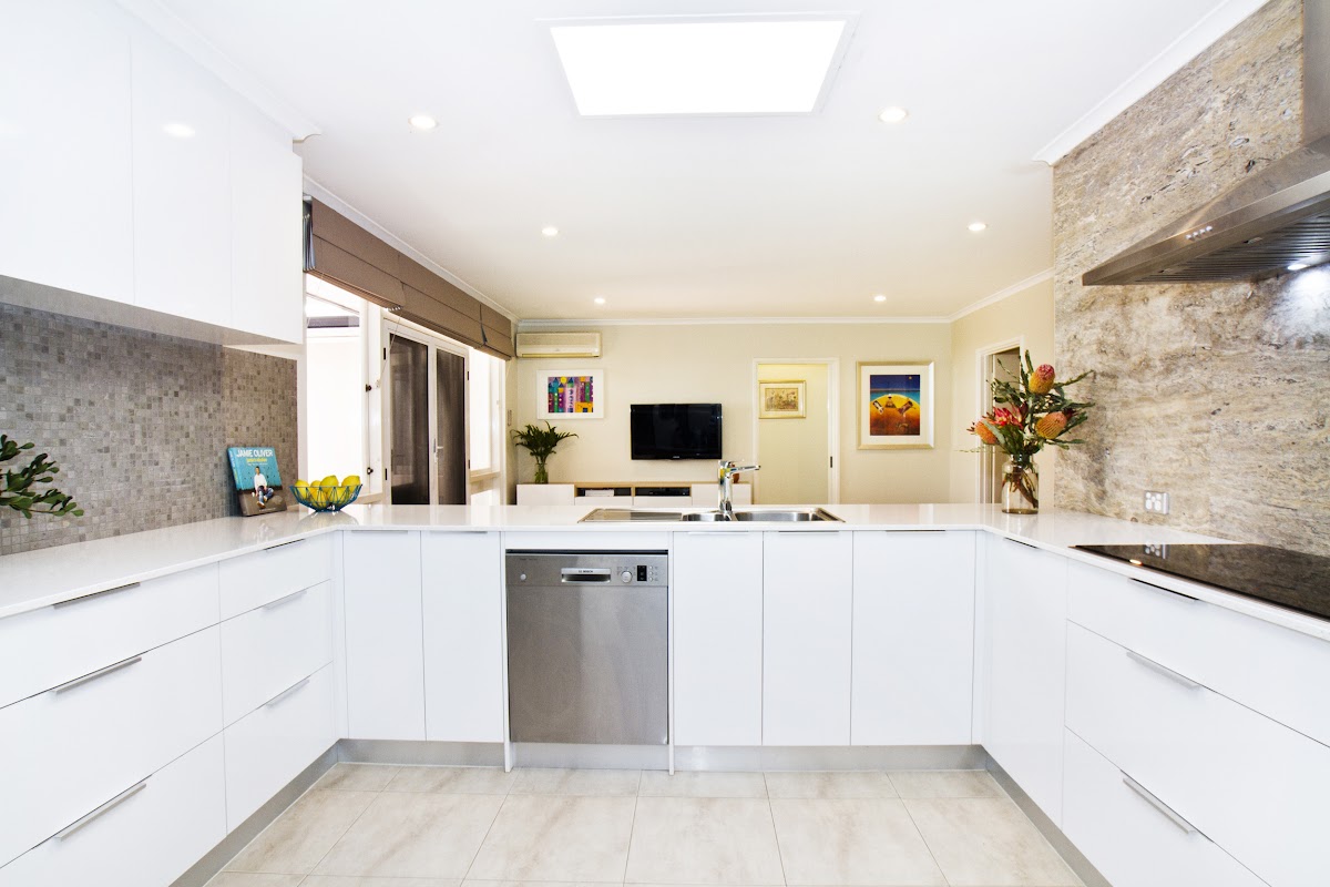 The gourmet kitchen has been fitted out to perfection with a Neff induction cooktop, Neff wall oven and combination steam oven, Bosch dishwasher, stainless steel rangehood, fridge recess plumbed for water, water filtration tap, white high gloss cabinetry with soft-close drawers, engineered stone benches, stone splashbacks, breakfast bar alcove, plenty of storage and a walk-in pantry.