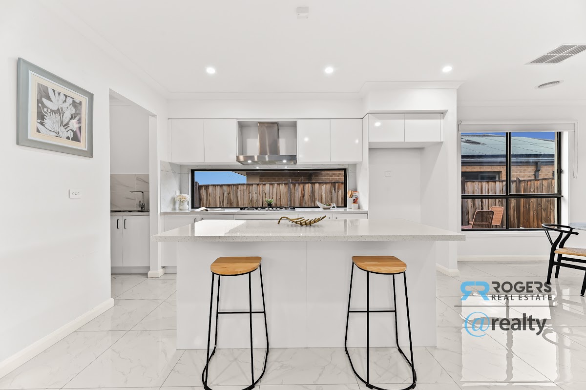 The main living area is open-plan and fully tiled, seamlessly connecting the kitchen and dining area. This space is complete with downlights, and block-out blinds, making it both functional and stylish for everyday living and entertaining.
