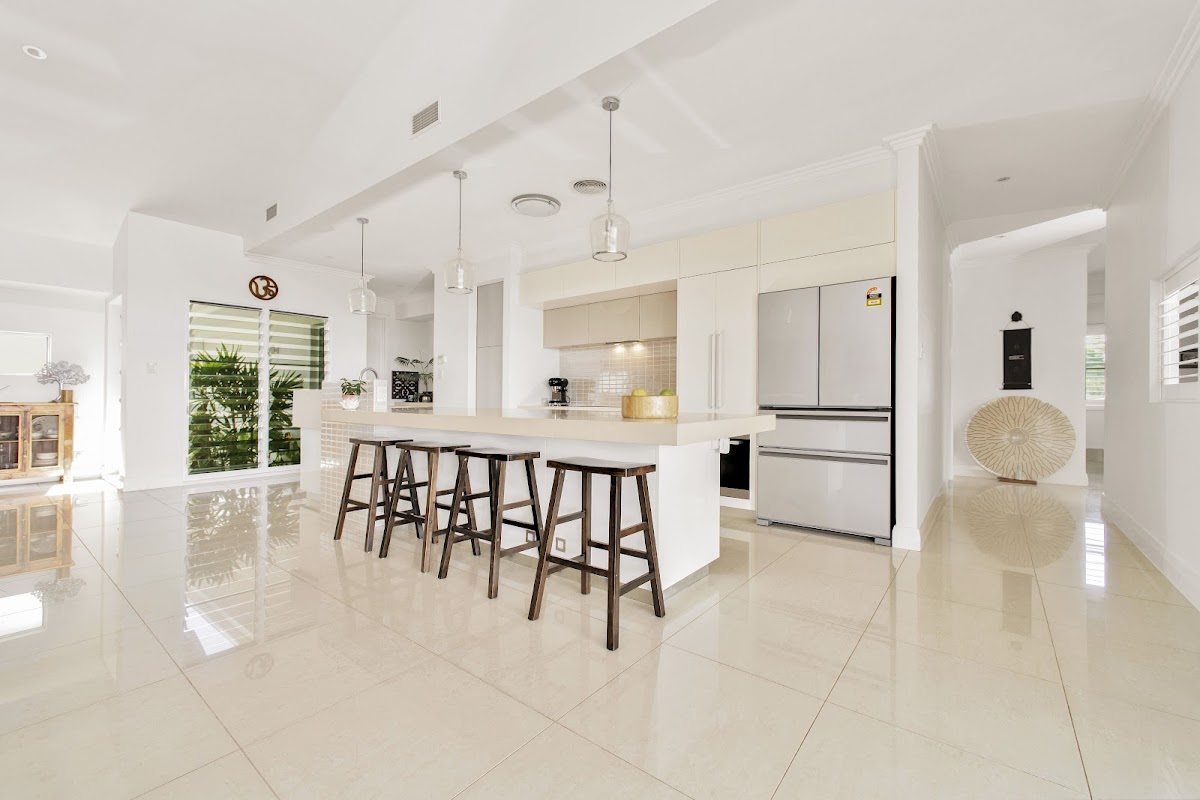 Flawless in design the home boasts open-plan and indoor/outdoor living spaces with natural stone features and polished timber flooring. Working from home is a pure delight with an enormous home office space including separate entrance.