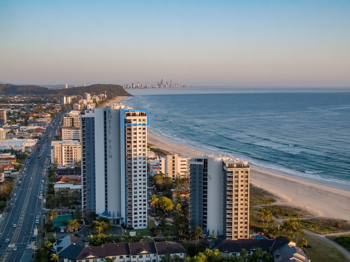 Positioned on the 25th and 26th floors, and spanning over 394m2 and with 18.5m wide ocean view, this elegant apartment Royal Palm is located in a premier position at one of the Southern Gold Coast’s stunning beaches.