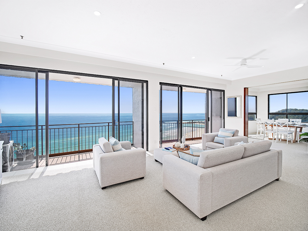 Exquisite 270-degree uninterrupted views of the Pacific Ocean and prestige beaches from Coolangatta to Surfers Paradise, and the serene Hinterlands. The view will captivate you day or night from this original two-level penthouse, with its own private roof top pool and spa. Complete with 4 spacious bedrooms, and 4.1/2 bathrooms.