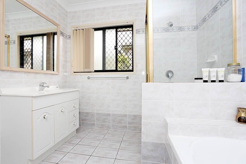 The air conditioned kingsize main bedroom has a balcony, en suite, ceiling fan and built in robes. Two additional bedrooms are double size with air conditioning, ceiling fan and built in robes. The main bathroom completes the upstairs living area perfectly.