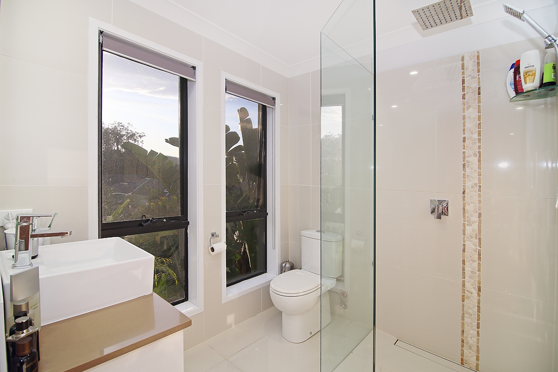 Main bathroom with separate toilet.
