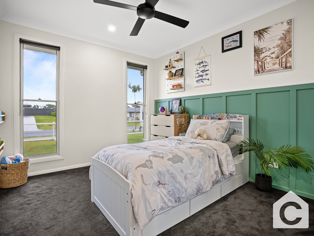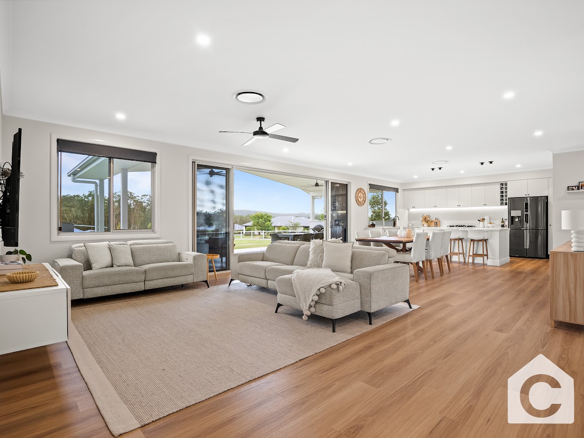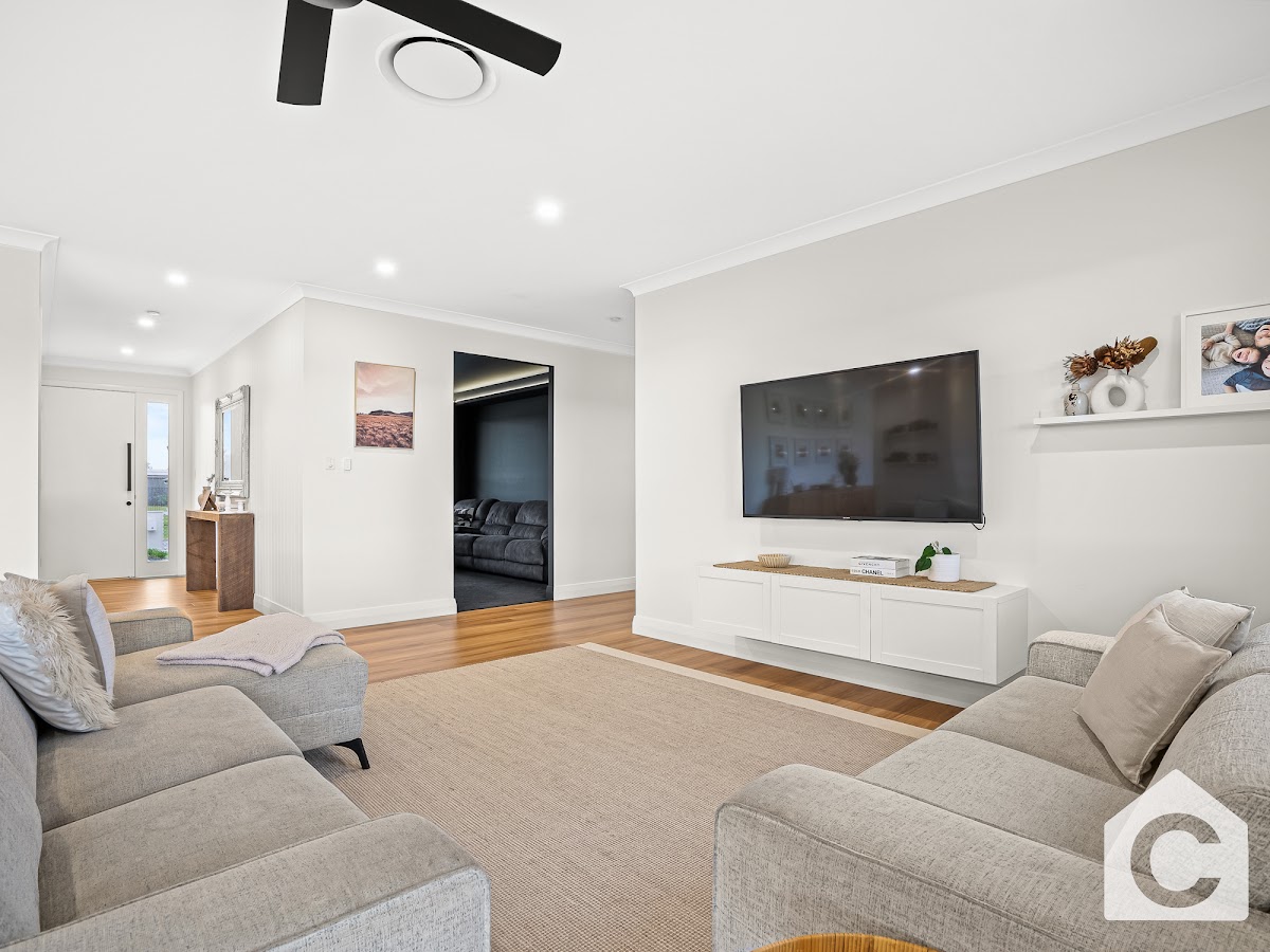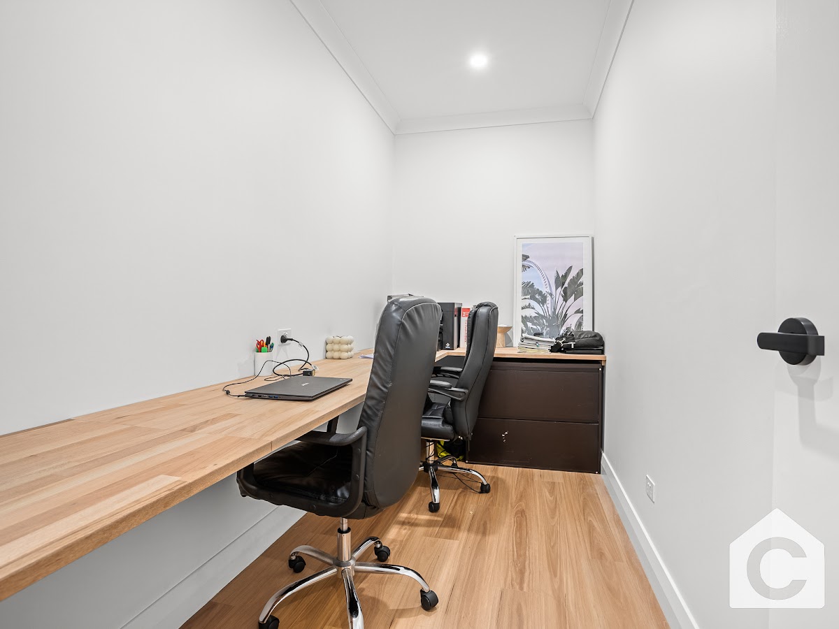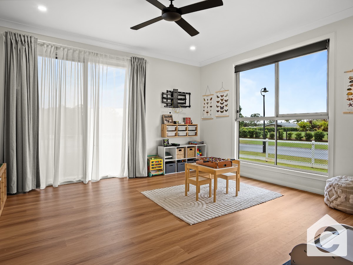 The interior of this house is a perfect blend of modern design and classic elegance. The open-plan kitchen , dining and living area is a sight to behold, with high ceilings, sleek flooring, and tasteful decor as well as a seperate office for that perfect work from home space! The seperate media room is the perfect place to unwind after a long day, with large windows that let in plenty of natural light. A 3rd living area , perfect for the kids toy room makes a great tucked away space perfect for younger or older kids!