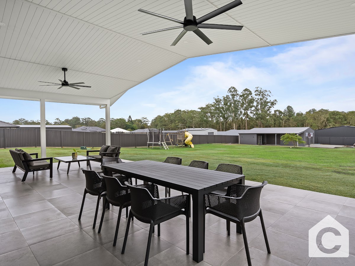 – Massive outdoor entertainment area with flood light into backyard