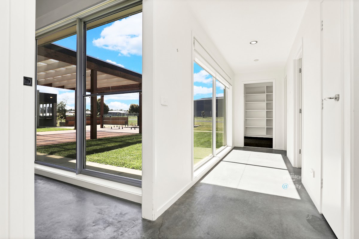 The master en-suite bedroom features a beautiful vista out to the spa deck and the rolling hills beyond. Mozaic tiling and custom concrete formwork in the ensuite and large walk through wardrobe create a luxurious escape for mum and dad, while just opposite you’ll find a large home office with built in shelving that’s perfect for the new work from home normal. Three more bedrooms, a large family bathroom and laundry complete the picture on the adjacent wing, with all bedrooms fitted with custom sizel carpets.