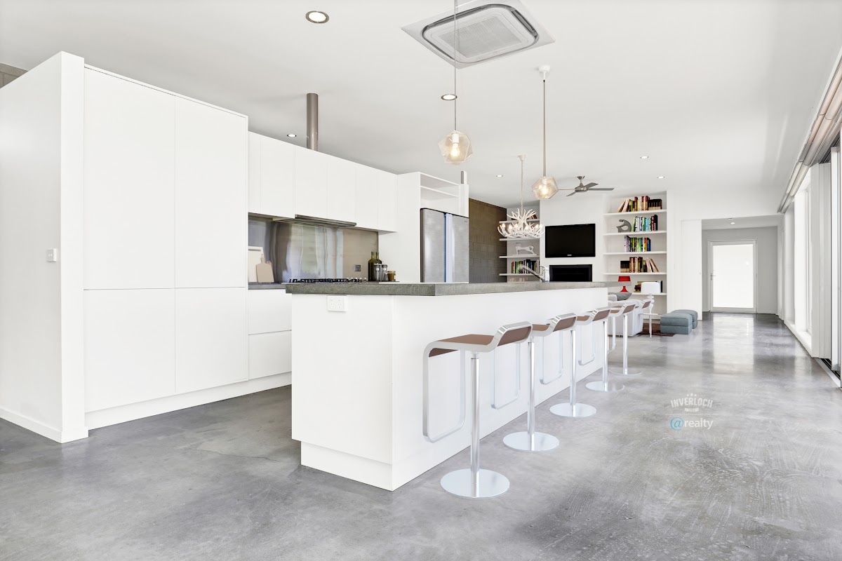 Superb indoor and outdoor spaces blend seamlessly to create a truly live-able environment, enhanced by the passive solar design, double glazing and polished concrete floors and solar boosted hot water. The home flows from the large central kitchen and the clever design elements that allow for the zoning of this large open plan space. All views are out to the beautiful covered hardwood entertaining deck compete with a huge in-ground spa with natural gas heating, you’ll have a great vantage point of the kids – who are going to LOVE this home! You’ll love it too especially when entertaining and cooking up a storm from the enclosed alfresco kitchen.