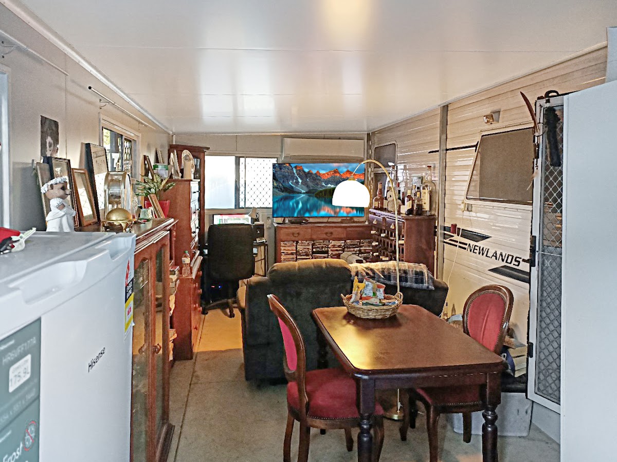 Located at the Bush Oasis Caravan Park, across the road from The Billabong Sanctuary, is this lovely site that includes a 2008 26 foot Newlands Caravan with a permanent insulated annex attached.