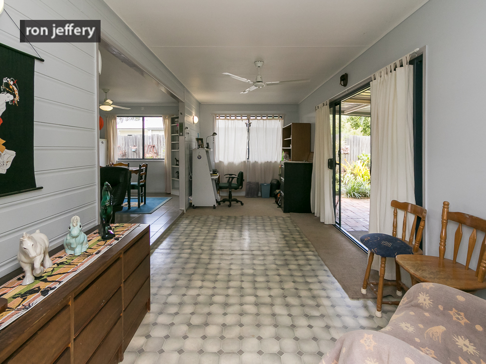 It has a spacious two bedroom home on a level quarter acre lot, well fenced and screened from the road. The screening, hedging and gardens have created a courtyard effect at the front of the home. A great extension to an already spacious living area.