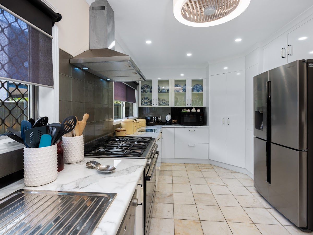 Marble floors throughout the home and carpet in 4 of the 5 bedrooms. A new kitchen less than 3 years old with so much storage and bench space, gas cooking, large oven, marble benchtops and dishwasher.