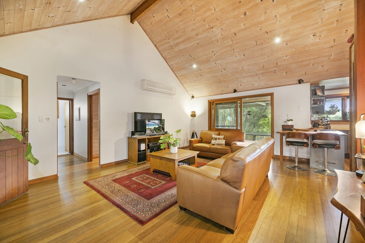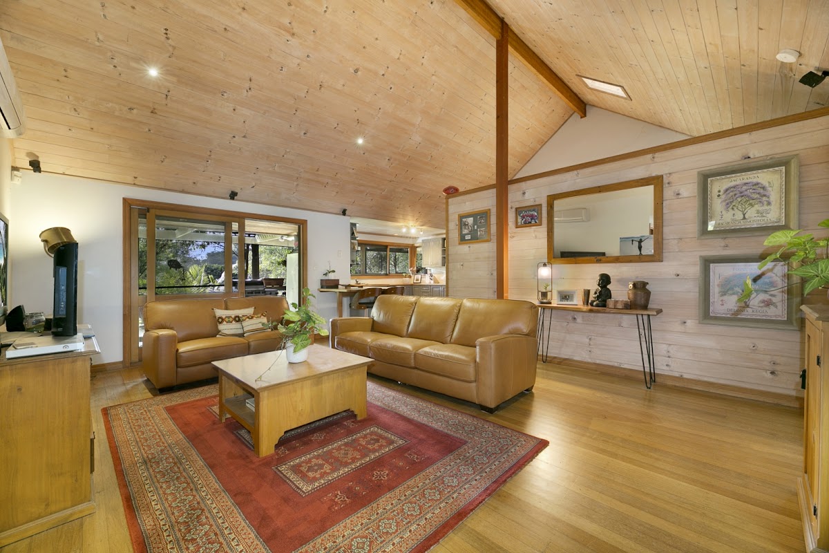 The main house, what a fantastic open plan living outlook, timber floors with high cathedral ceilings throughout, 2 living areas formal lounge , dining, large undercover decking, master bedroom with ensuite, walk in pantry and underground cellar.