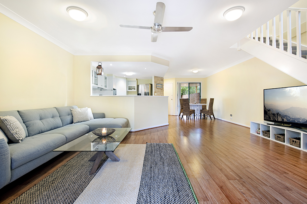 * A large townhouse with spacious, open plan living area downstairs – room for the separate dining area and lounge area.