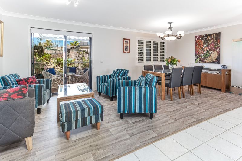 This is a lovely updated property built on a 710 sqm block and situated in a quiet location of the popular suburb of Banksia Beach. The home features multiple living areas and outdoor entertainment areas. An ideal home for families or for those wanting to entertain family and friends. A particular asset of this home is the self-contained accommodation, ideal for extended family or additional income.