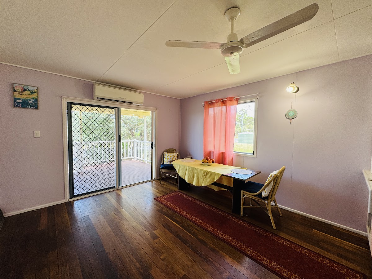 With two bedrooms, each boasting air conditioning, and 1x bathroom, this semi-raised house sits on sturdy steel stumps, promising both durability and peace of mind. The large 7x7m rear timber deck provides an idyllic setting for relaxation or entertaining, complemented by polished timber floors that add a touch of elegance to the living spaces inside.