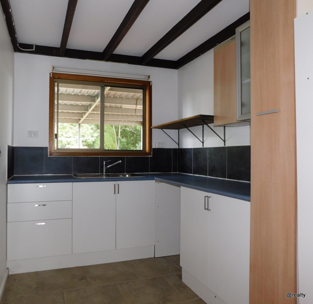 *Very large kitchen in main home with extra high bench tops. Gas hot plates and electric oven. Dishwasher, rangehood and large pantry. Rainwater and town water taps at the sink.