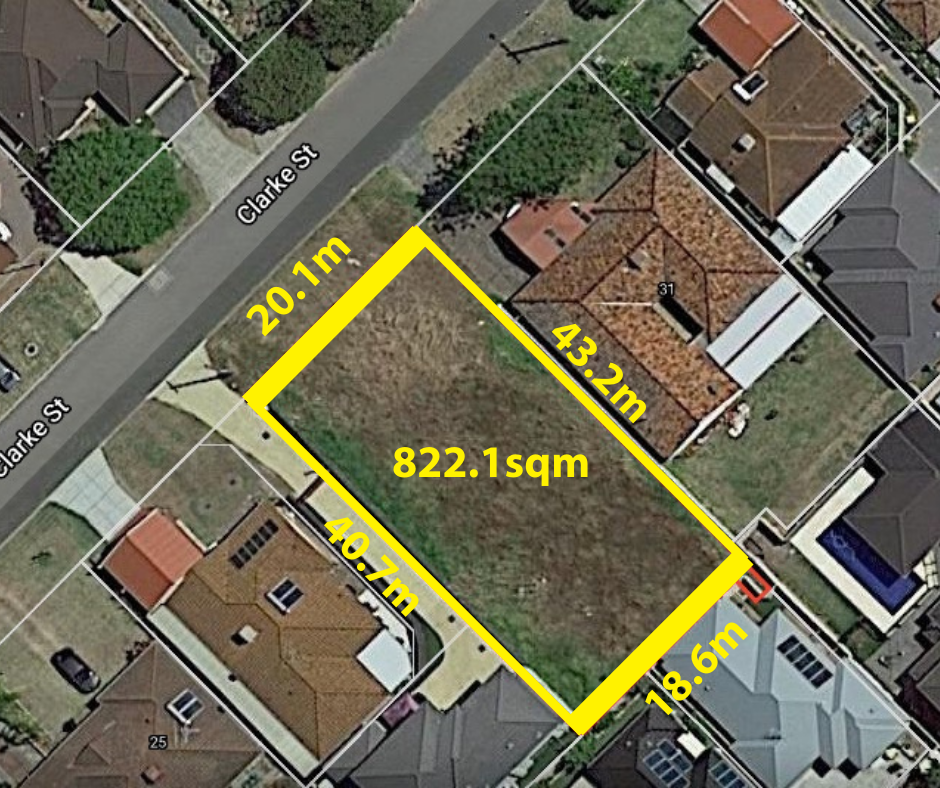 822 SQM green title block with 20.1m frontage and zoned R30