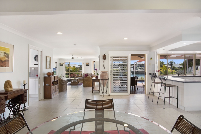 . Ideal location for the boating enthusiast with a five minute access to the Broadwater, 6knots no wash under 2 x 3.5mt clearance bridges at medium tide with as new Pontoon to accomodate up to 40ft boat, depth of 1.5 metres.