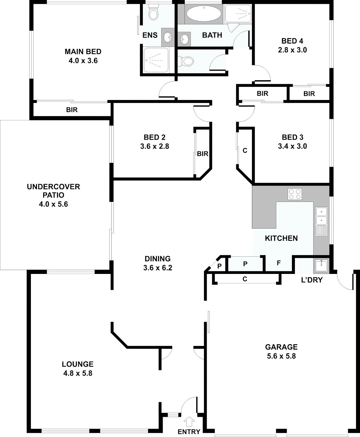 * Spacious functional light filled kitchen with dishwasher and ample storage