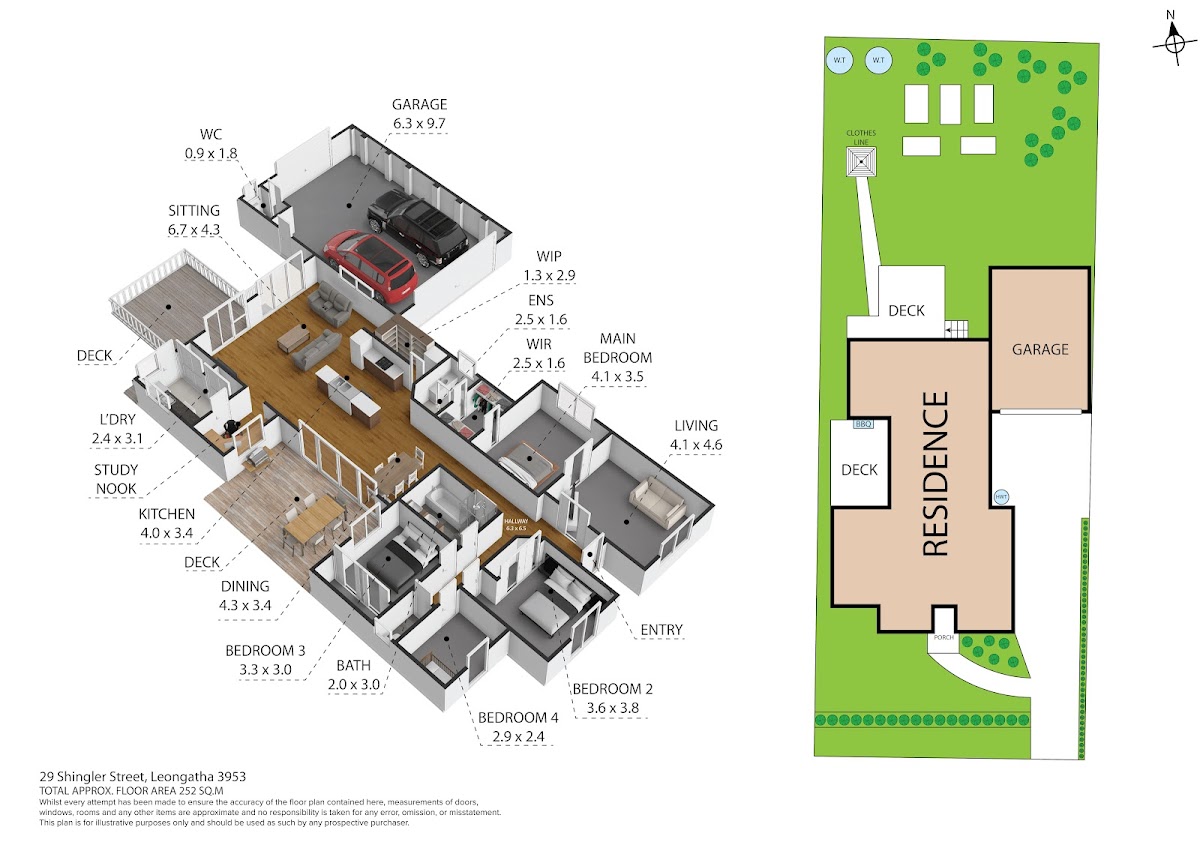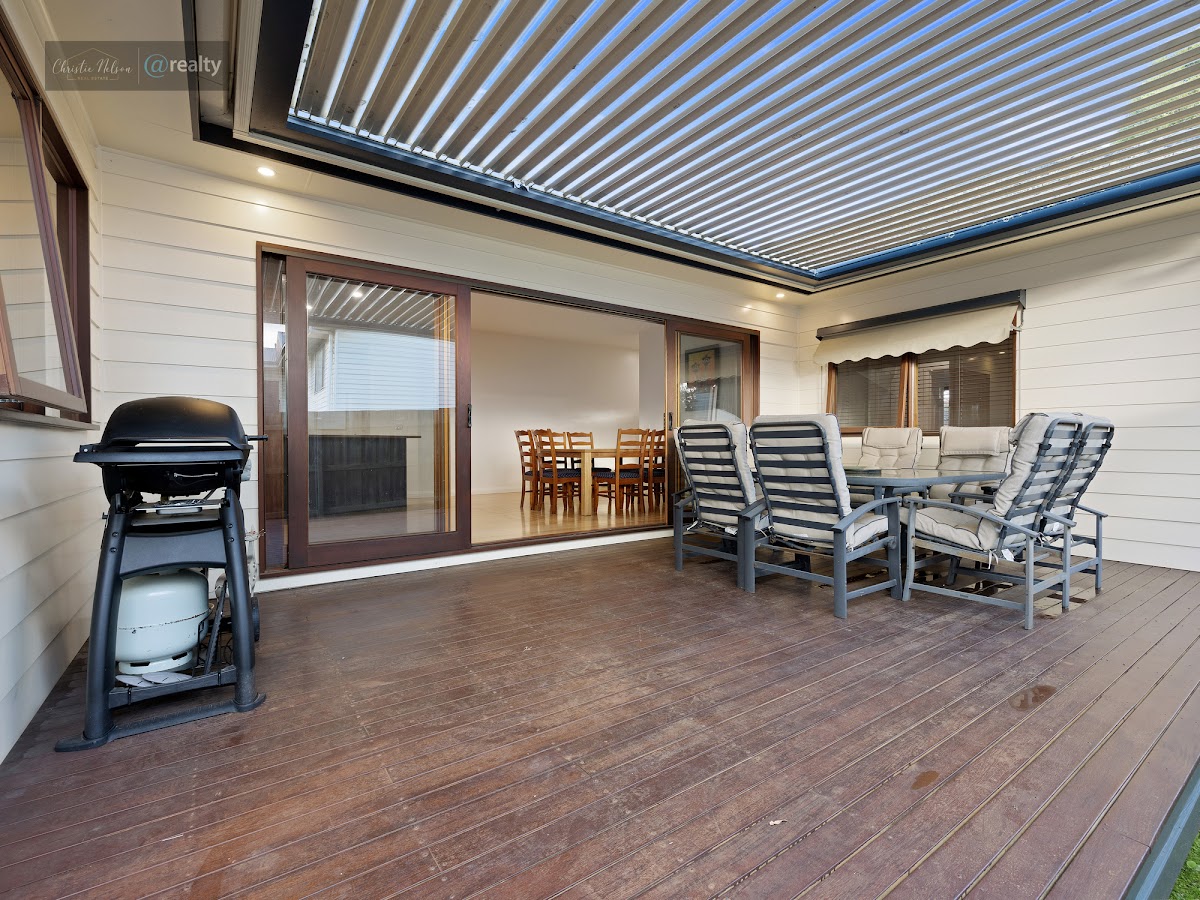The open plan living, dining and kitchen area are well designed and boasts a high-quality kitchen, WI pantry, North Facing aspect and deck overlooking the yard, plus a separate covered outdoor entertaining area.