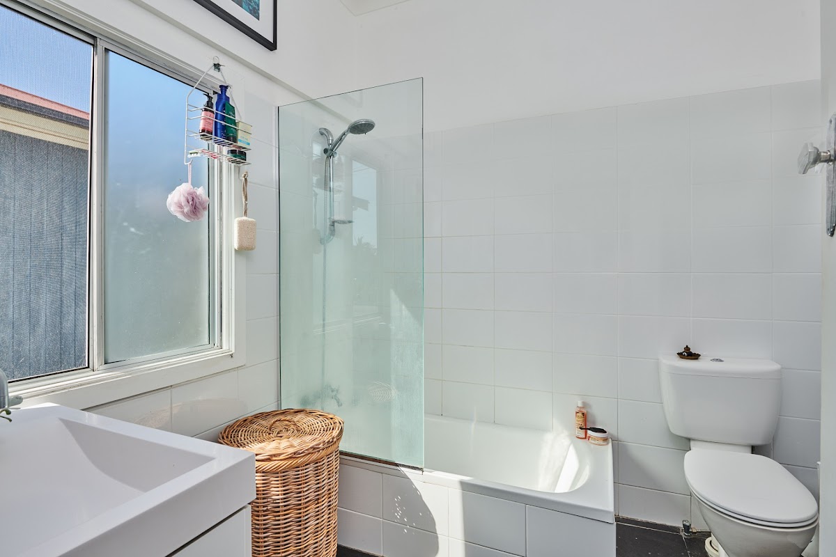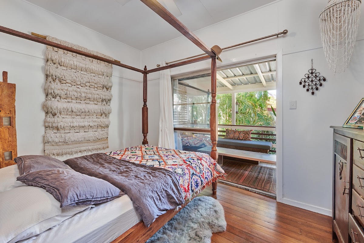 Privately positioned behind swaying palms, this hidden oasis would be an ideal holiday home, weekender or permanent home. Live upstairs and run your business or home office downstairs. Nostalgic beach house with really lovely atmosphere, reportedly built in the 1930’s using recycled timber from the original Hotel Brunswick features:-