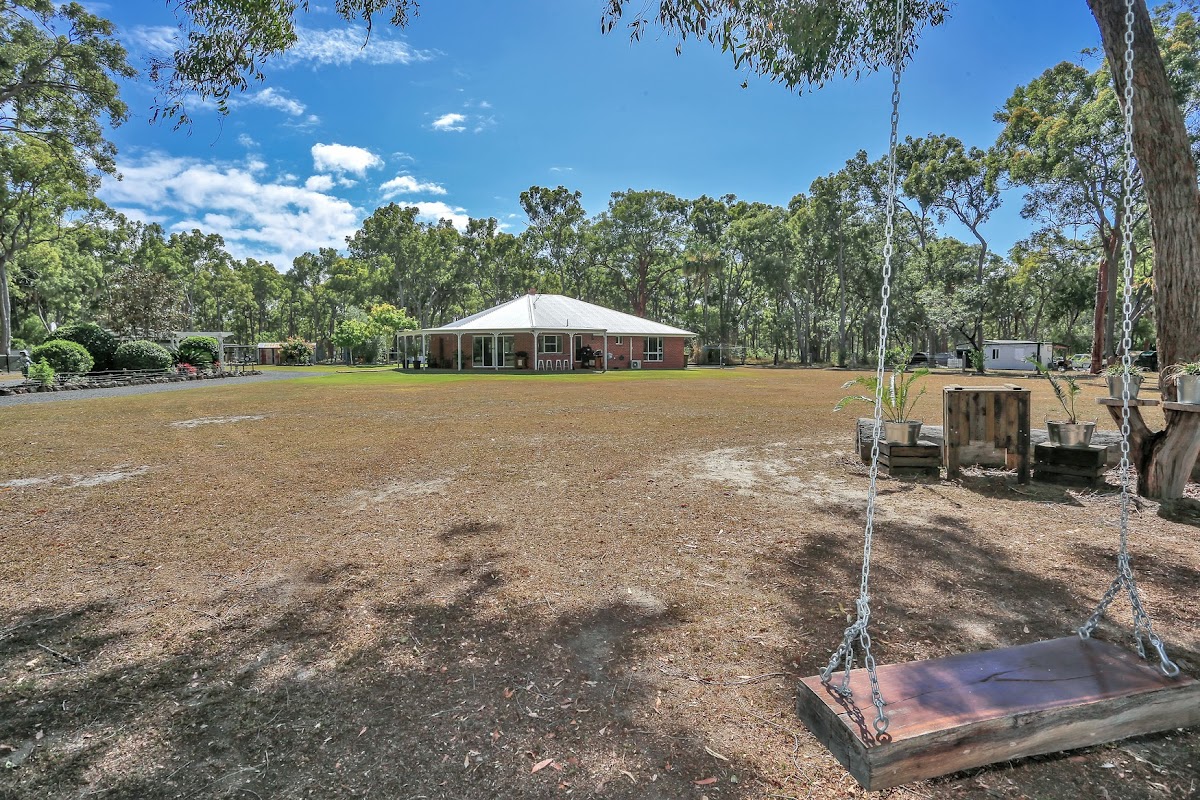 Grand entrance to the property through automatic gates, horseshoe driveway with selective trees and established gardens. The impressive home has security screens/doors, bullnose verandas, formal and informal living areas. Spacious open plan living with central fireplace, floating floorboards, neutral tone colors throughout and air conditioning. The modern kitchen features 5 burner gas stove, double oven, new dishwasher, island bench and massive walk in pantry. There are three generous sized bedrooms boasting carpet, fans and built in wardrobes whilst the master offers additional air conditioning, large walk in wardrobe and ensuite. The main bathroom is complete with deep bath, vanity, shower and separate toilet. There’s plenty of parking with a three-bay shed, double garage with adjacent double carport offering power and workshop with extra carport overlooking the outdoor entertaining area and swimming pool. The property is completely dog fenced with separate paddocks, chook house and dog kennel. This stunning property is set back from the road offering total peace and tranquillity. With many extra features on offer, INSPECTION A MUST!!