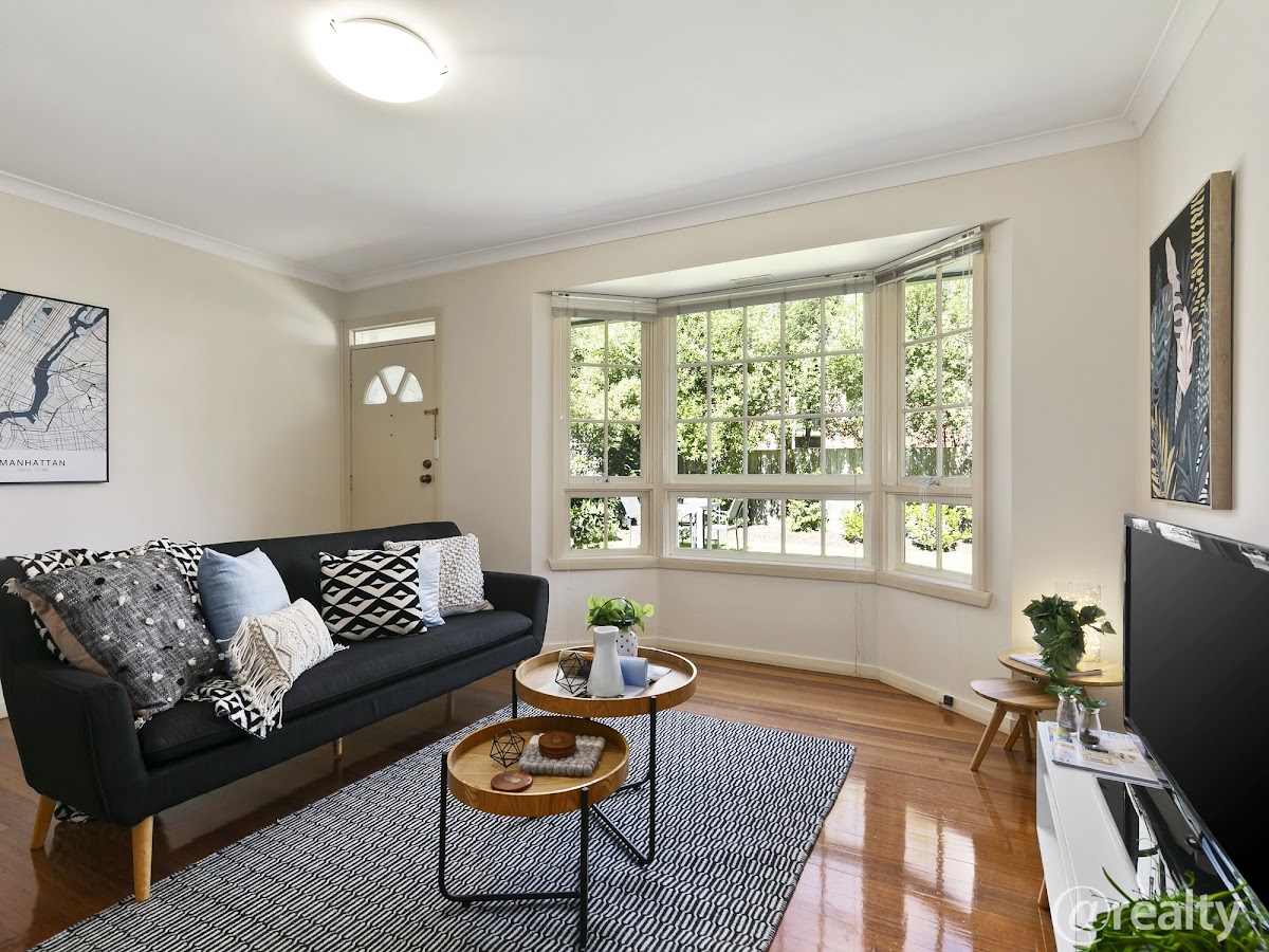 Beyond the colonial inspired exterior, this solid two bedroom residence offers a brilliant interplay of natural light and neutral tones, creating a warm and welcoming interior. A large bay window in the lounge overlooks the lush garden while polished floorboards introduce an organic look.