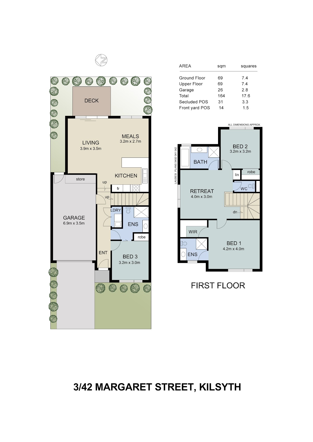 Comprising: 3 bedroom, 3 bathrooms, 3 toilets, double storey with own street frontage, lock up garage plus car space in front. Approx. 18.5 to 20Sq with 2 Master bedrooms with full en-suite upstairs & downstairs, large open plan living zone. Featuring; kitchen meals with large open plan lounge / family area, separate sitting room / TV room upstairs, stone bench tops, stainless steel appliances, separate European laundry, separate powered room all with easy access to the decked and courtyard gardens.