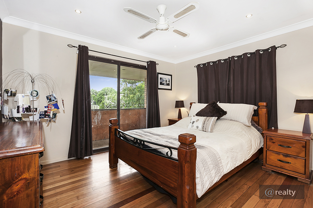 Polished hardwood timber floors are a feature throughout the second level, where you will also find three bedrooms. The master bedroom is air-conditioned and features a built-in robe, ceiling fan and access to the balcony. Bedroom two also offers a built-in robe and ceiling fans.