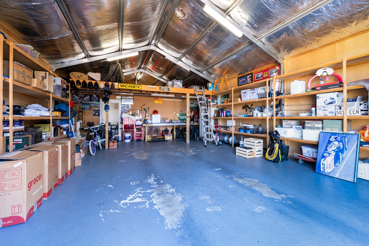 Looking for the perfect garaging well an approximately 13 x 7 color bond garage is ideal as a workshop including storage racks and room for vehicle storage it also includes a teenager’s retreat with spit system air-conditioning and its own bathroom.
