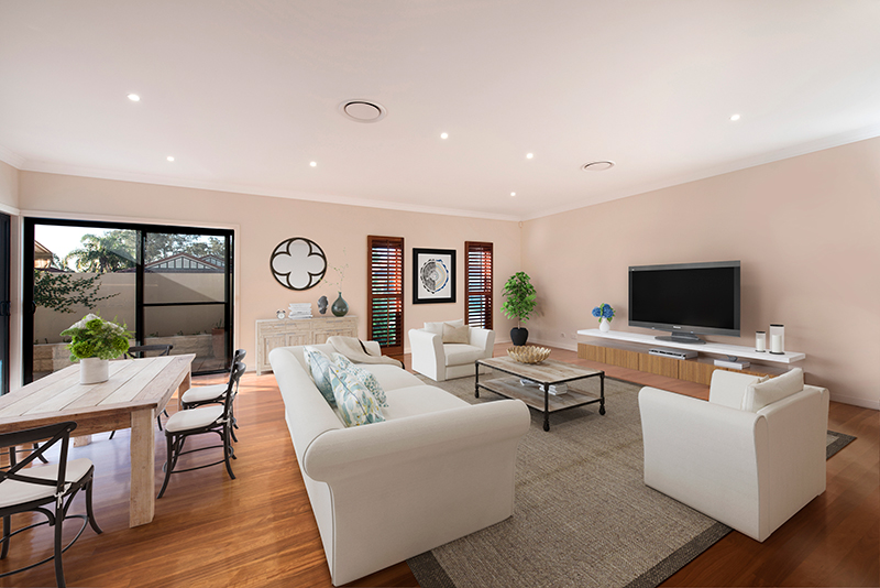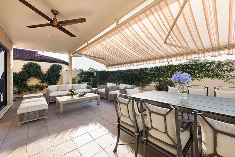 4. Lovely open plan view onto a very private court yard with electric controlled awning.