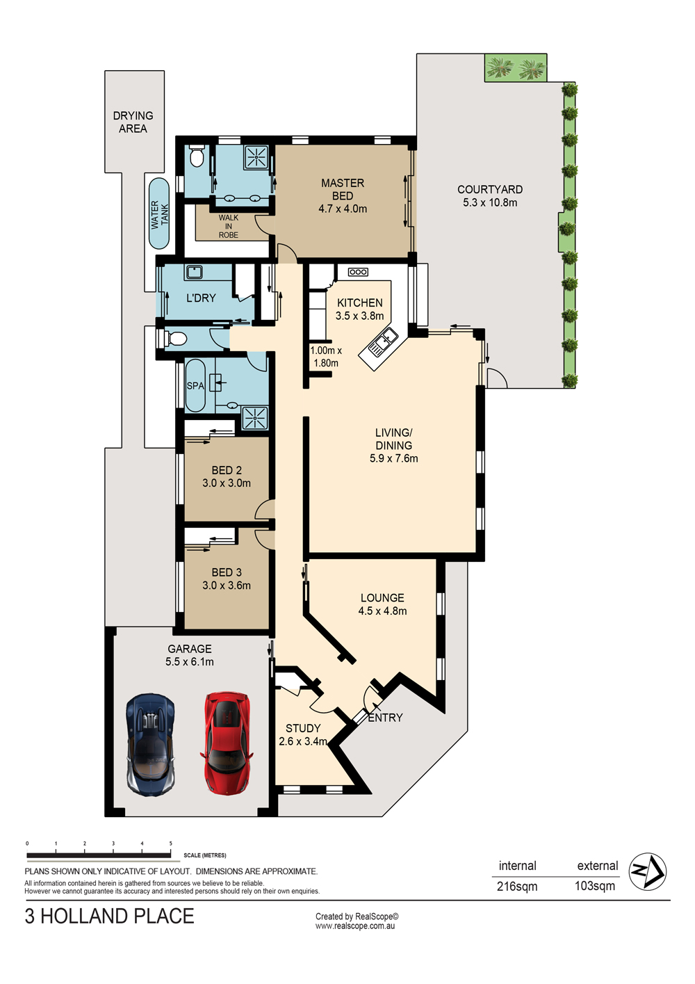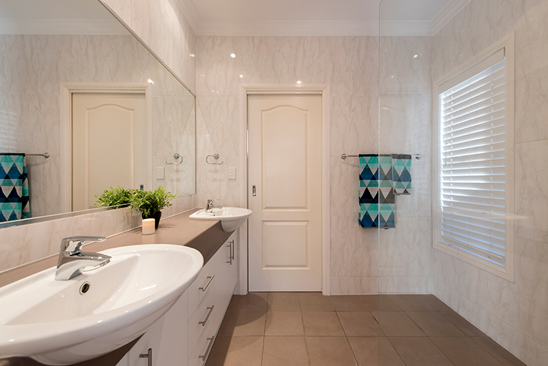 The main bathroom has a separate shower plus a full sized spa bath, and glass brick feature window, and a luxury ensuite provides a double shower and twin vanity units.