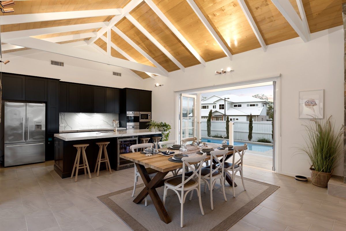 An inviting entrance complimented by an light filled internal court yard extends effortlessly to the superb open plan family and entertainer’s area. Making entertaining a breeze, the wonderful alfresco sits high and private , perfect for a BBQ with a stunning backdrop to the pool and lawns.