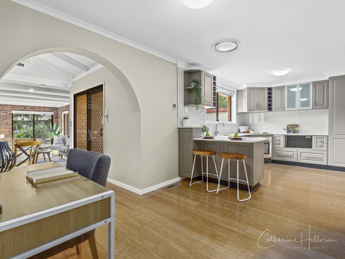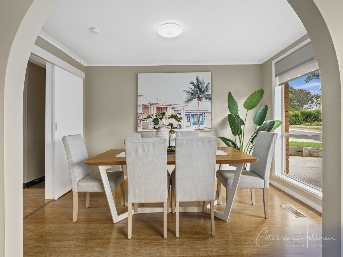The kitchen is a focal point of the home, featuring modern inclusions such as a dishwasher and electric cooktop. The adjacent meals area provides a space for casual dining while the separate dining room caters to larger gatherings. Enjoy the convenience of separate lounge and dining rooms, each offering distinct living spaces for entertainment or relaxation. Bamboo floorboards add elegance, complemented by carpeted bedrooms refreshed in modern tones.