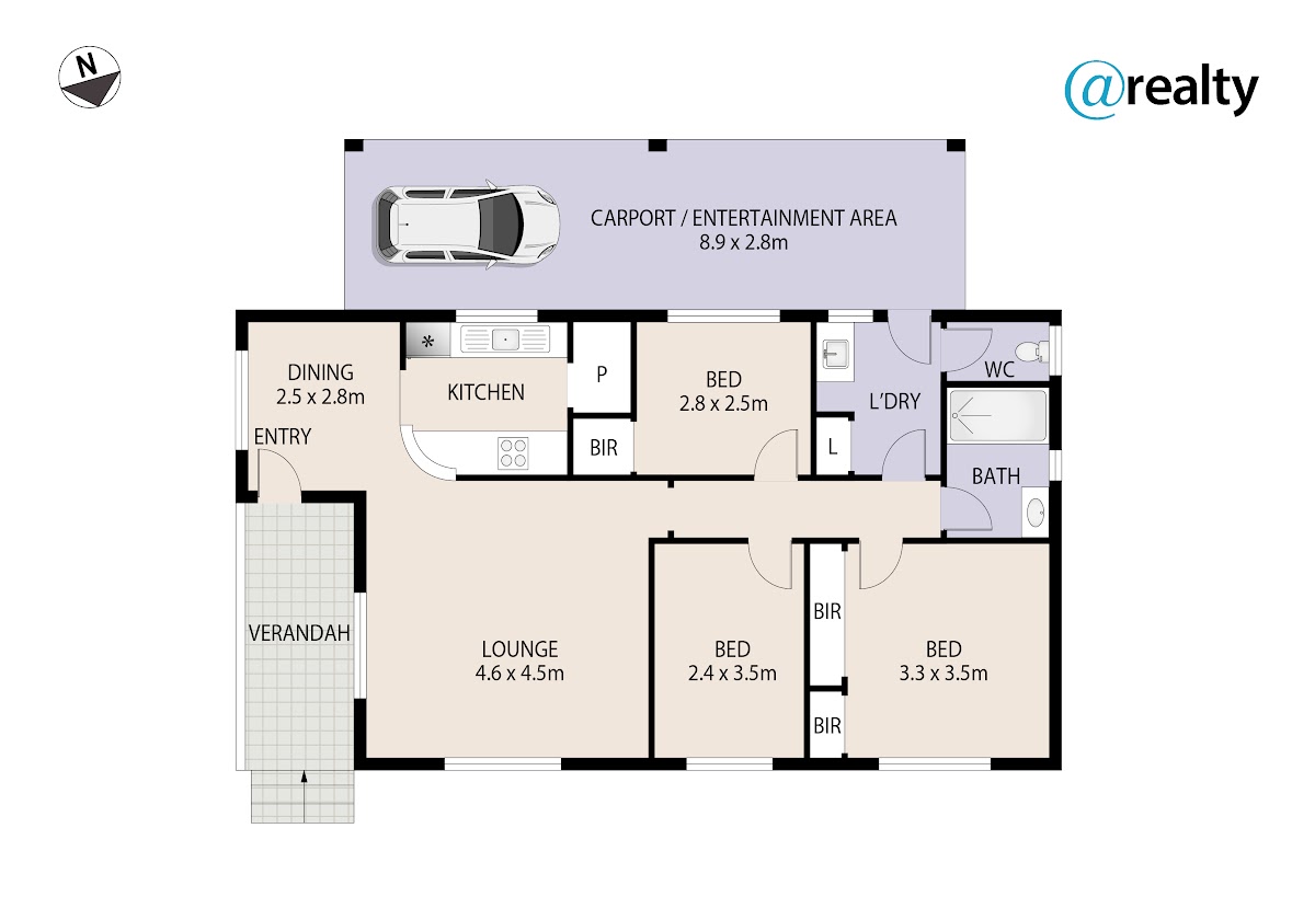 The bathroom is modern with separate w/c off the generous laundry with direct undercover access to the carport and outdoor entertaining area. There are shutters on all windows which is handy for security, noise, or light reduction to suit your lifestyle.
