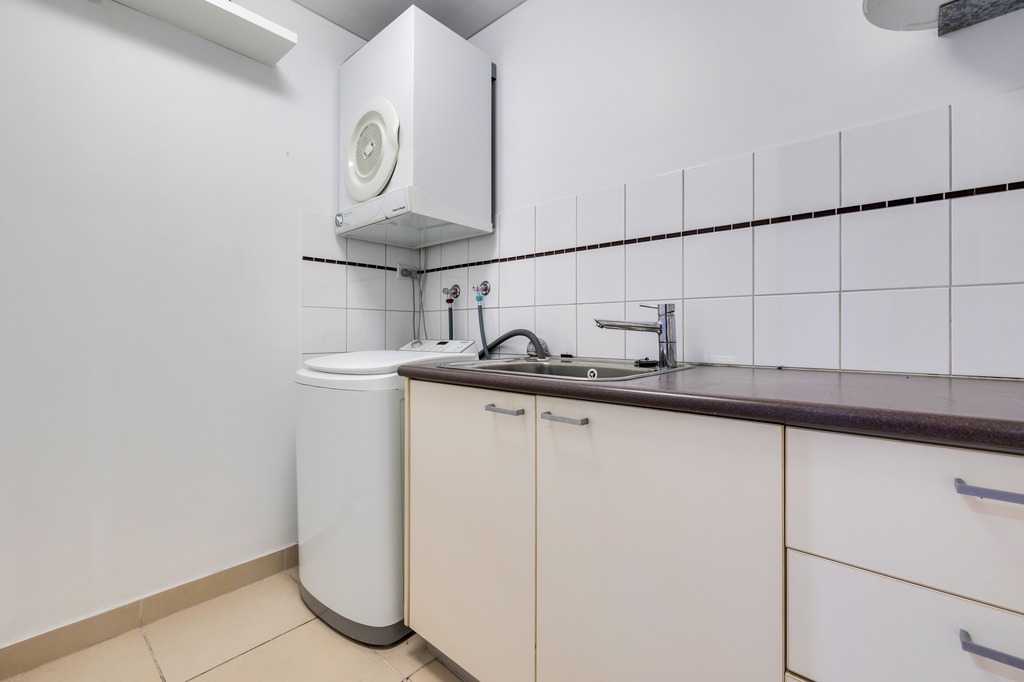 – The main bathroom has a low vanity with built in storage space plus a shower.