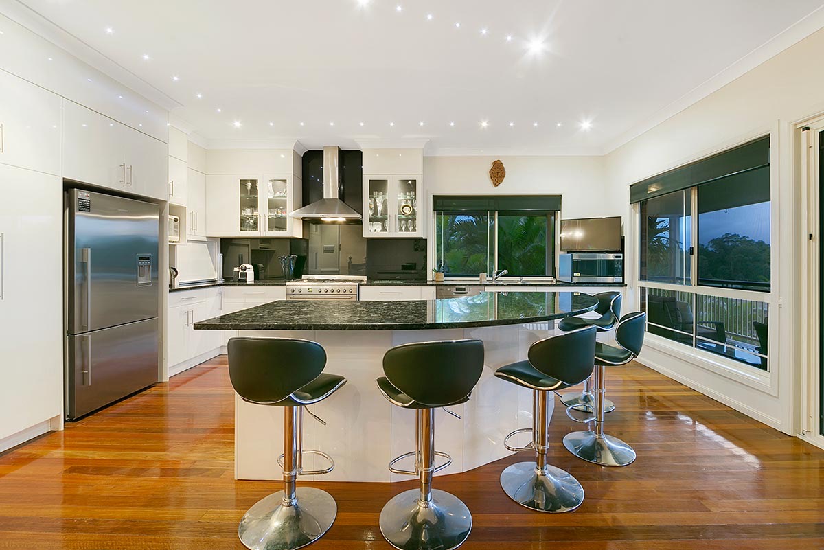 The modern kitchen, featuring quality appliances and granite bench tops, is at the heart of the family / living area. This space extends out onto the large wrap around verandah where you can just chill out and relax anytime.