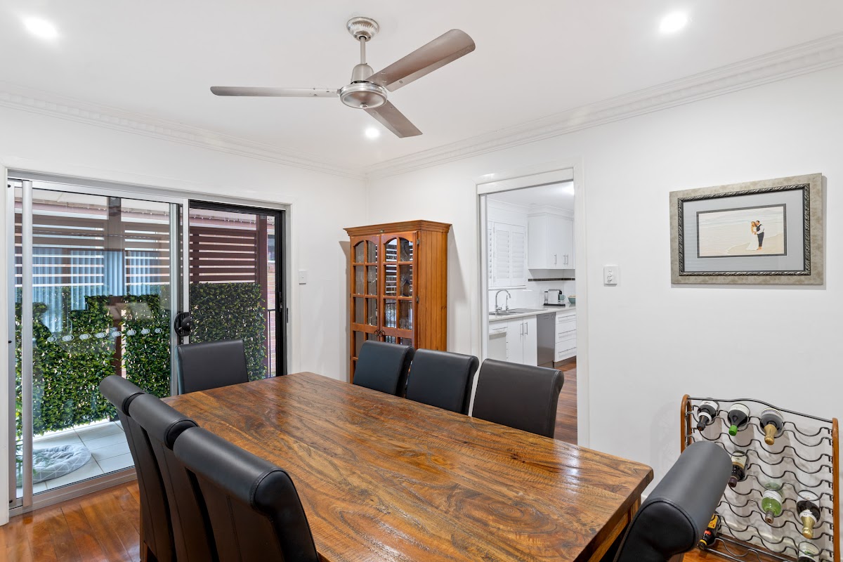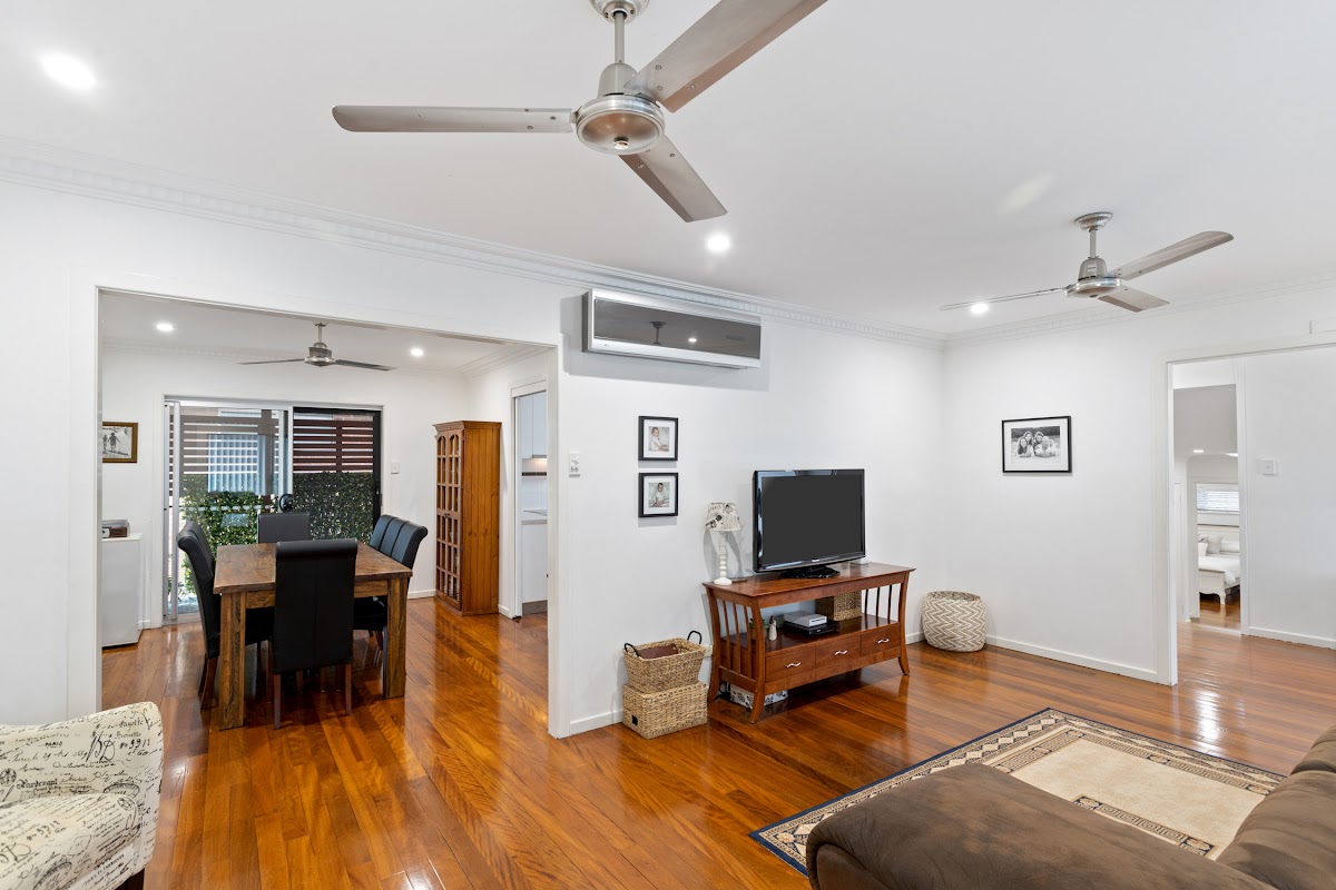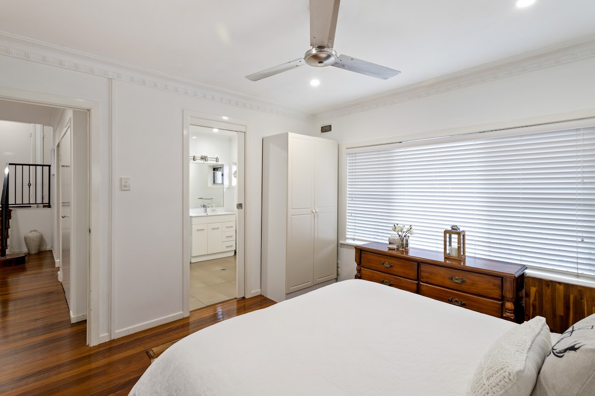 Upstairs this contemporary updated property offers 3 spacious bedrooms, two modern bathrooms. An open living area with solid timber floors , modern kitchen with adjacent dining room as well as enclosed sunroom.